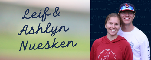 Grace family, welcome our newest members, Leif and Ashlyn Nuesken! Leif is a law student at UA, originally from Colorado, and Ashlyn works in Columbus, MS, but is originally from Michigan. These folks may need some of you native Alabamians to give them a hand with the sweltering heat this summer!